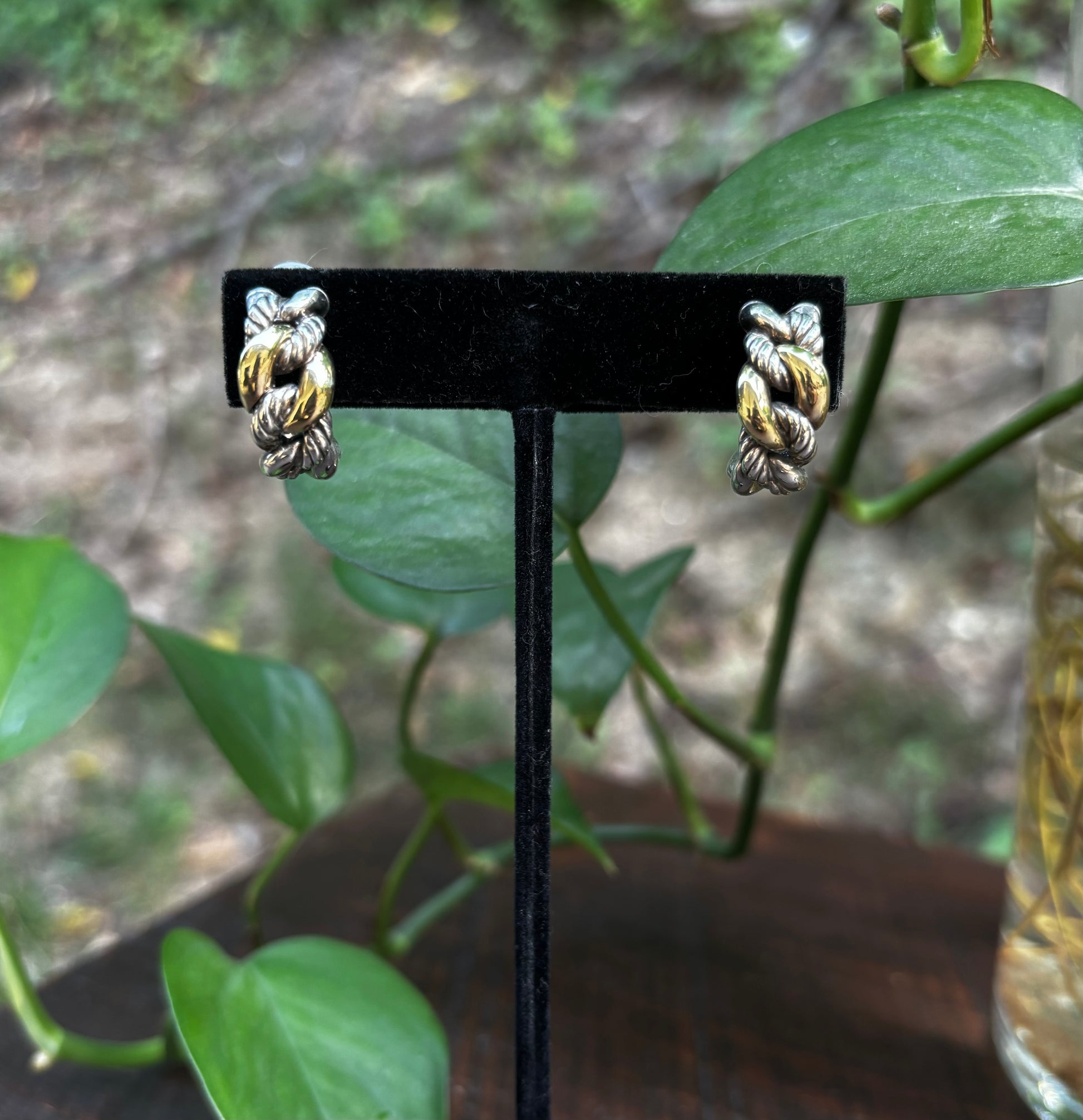 David Yurman Sterling Silver with 18K Yellow Gold Braided Hoop Earrings
